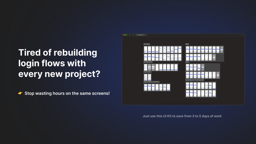 Registration Flow UI Kit - 120 Screens, Variables, Mobile, Tablet, Web